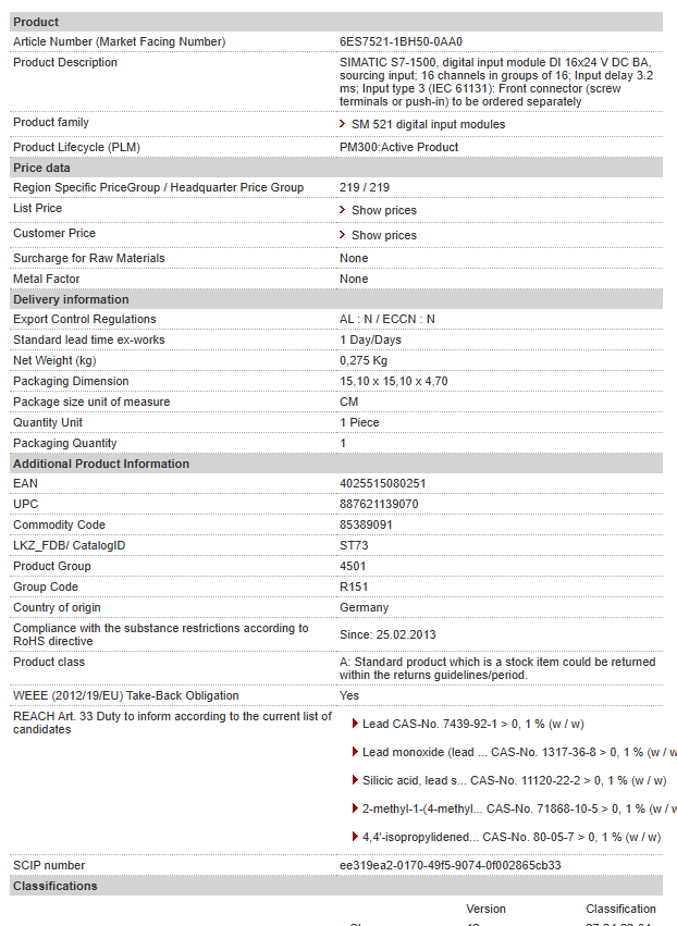 SIMATIC S7-1500, digital input module DI 16×24 V DC BA, sourcing input; 16 channels in groups of 16; Input delay 3.2 ms; Input type 3 (IEC 61131): Front connector (screw terminals or push-in) ……