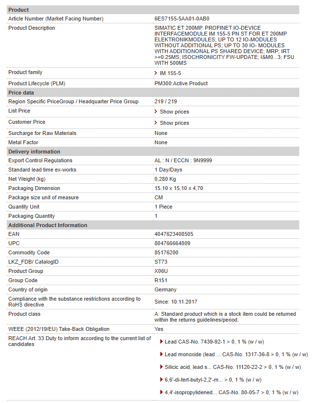 SIMATIC ET 200MP. PROFINET IO-DEVICE INTERFACEMODULE IM 155-5 PN ST FOR ET 200MP ELEKTRONIKMODULES; UP TO 12 IO-MODULES WITHOUT ADDITIONAL PS; UP TO 30 IO- MODULES WITH ADDITIONONAL PS SHARED DEVIC……