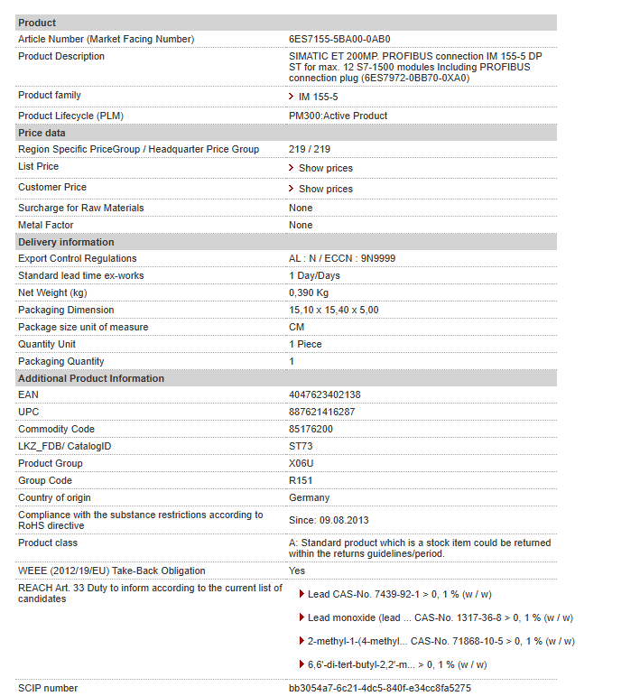 | SIMATIC ET 200MP. PROFIBUS connection IM 155-5 DP ST for max. 12 S7-1500 modules Including PROFIBUS connection plug (6ES7972-0BB70-0XA0) |
