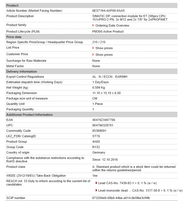 | SIMATIC DP, connection module for ET 200pro CPU 151xPRO-2 PN, 3x M12 and 2x 7/8″ for 2xPROFINET |