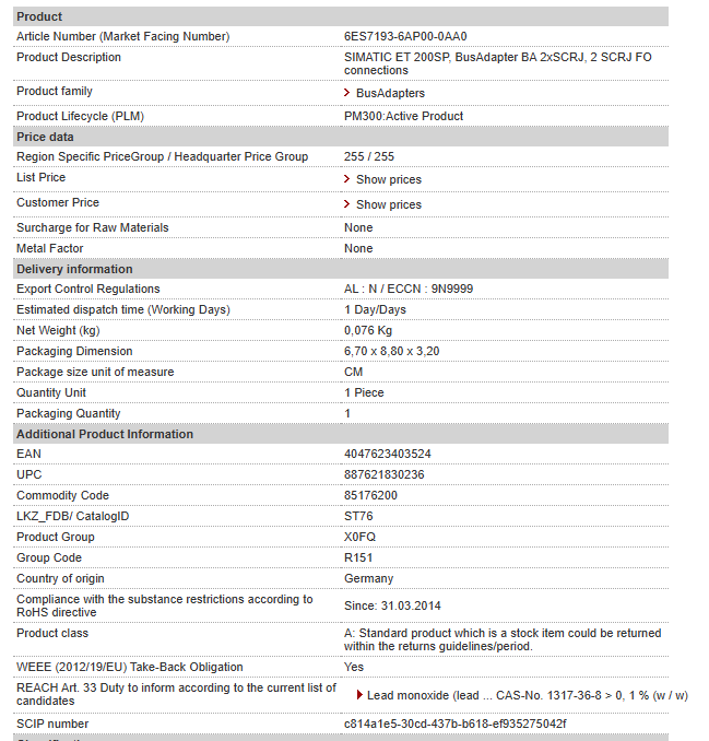 SIMATIC ET 200SP, BusAdapter BA 2xSCRJ, 2 SCRJ FO connections
