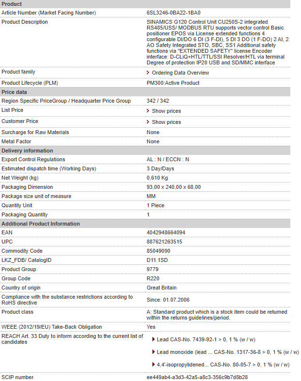 SINAMICS G120 Control Unit CU250S-2 integrated RS485/USS/ MODBUS RTU supports vector control Basic positioner EPOS via License extended functions 4 configurable DI/DO 6 DI (3 F-DI), 5 DI 3 DO (1 F-……