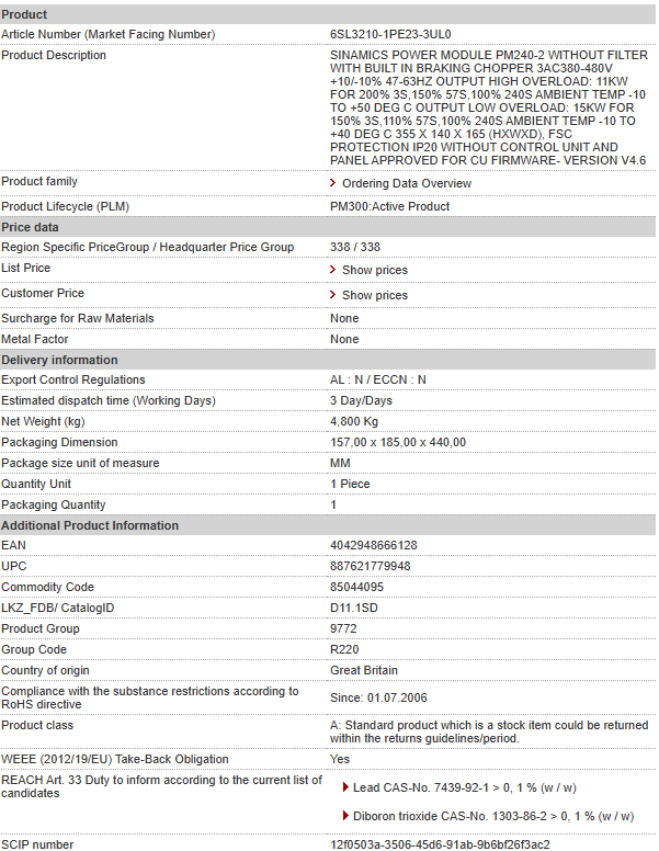 6SL3210-1PE23-3UL0