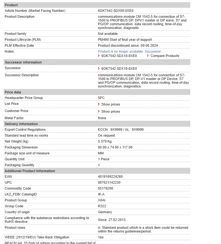 communications module CM 1542-5 for connection of S7-1500 to PROFIBUS DP, DPV1 master or DP slave, S7 and PG/OP communication, data record routing, time-of-day synchronization, diagnostic