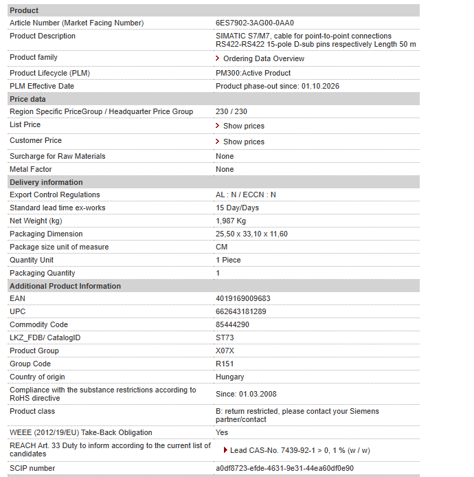 Fully Replaced SIEMENS Phased out Product