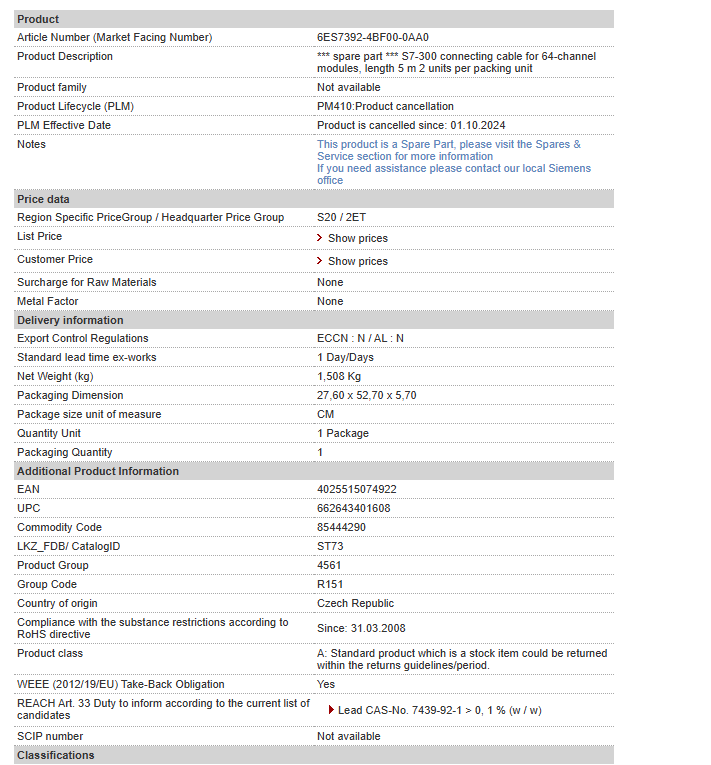 Fully Replaced SIEMENS Phased out Product