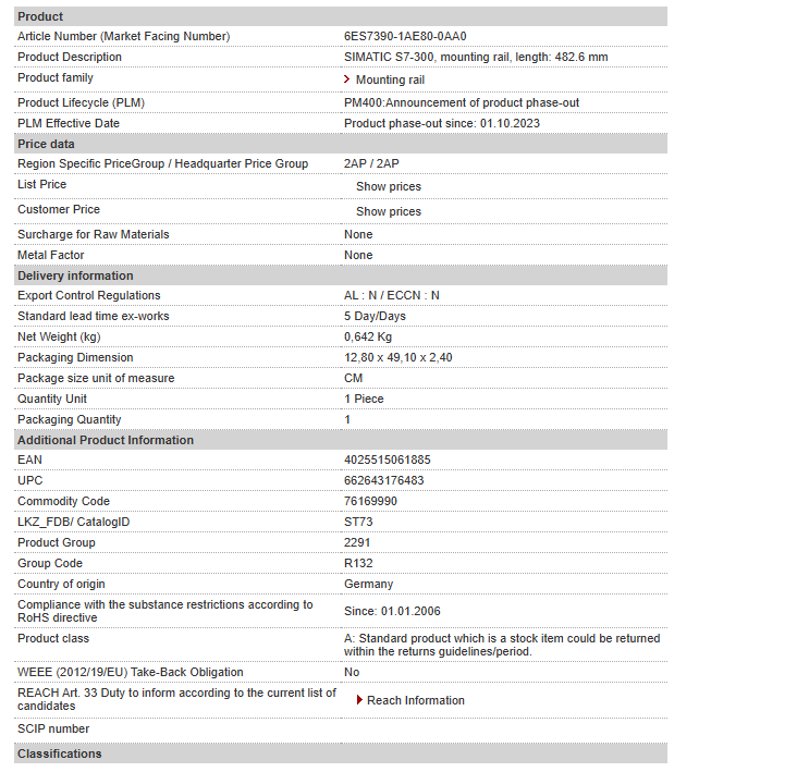 SIMATIC S7-300, mounting rail, length: 482.6 mm