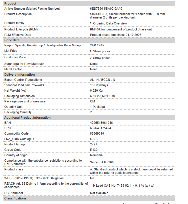 Fully Replaced SIEMENS Phased out Product