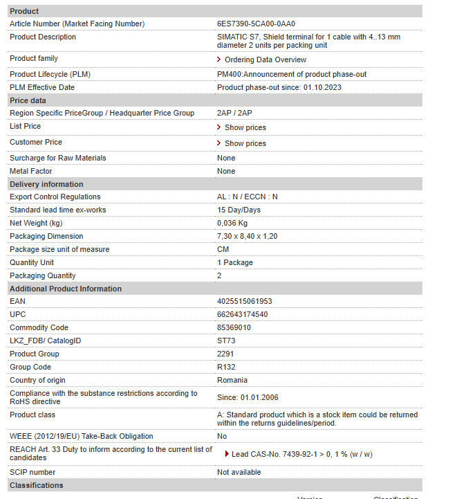 SIMATIC S7, Shield terminal for 1 cable with 4..13 mm diameter 2 units per packing unit