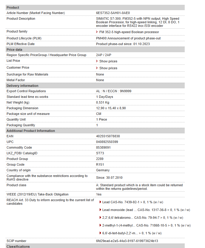 SIMATIC S7-300, FM352-5 with NPN output, High Speed Boolean Processor, for high-speed linking, 12 DI, 8 DO, 1 encoder interface for RS422 incr./SSI encoder