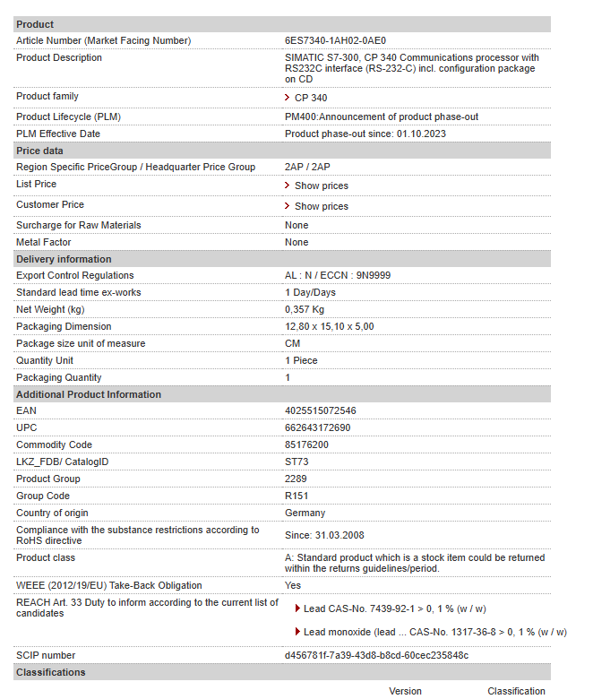 SIMATIC S7-300, CP 340 Communications processor with RS232C interface (RS-232-C) incl. configuration package on CD