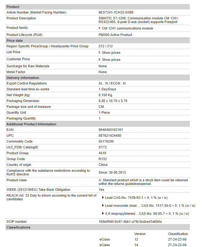 SIMATIC S7-1200, Communication module CM 1241, RS422/485, 9-pole D-sub (socket) supports Freeport