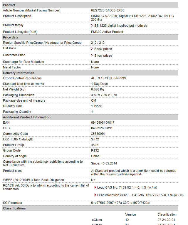 SIMATIC S7-1200, Digital I/O SB 1223, 2 DI/2 DQ, 5V DC 200kHz